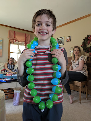 And getting candy. Joshua was so excited after opening every single egg. (And Isaac had the foresight of trading his gum, knowing I'd take most of it away.)